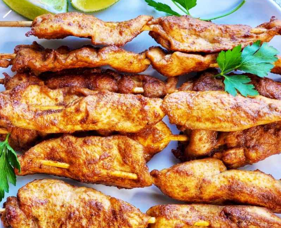 Pizza Sauce, Mozzarella Cheese, Red Chili, Onion, Green Pepper, Diced Chicken, Suya Ranch.